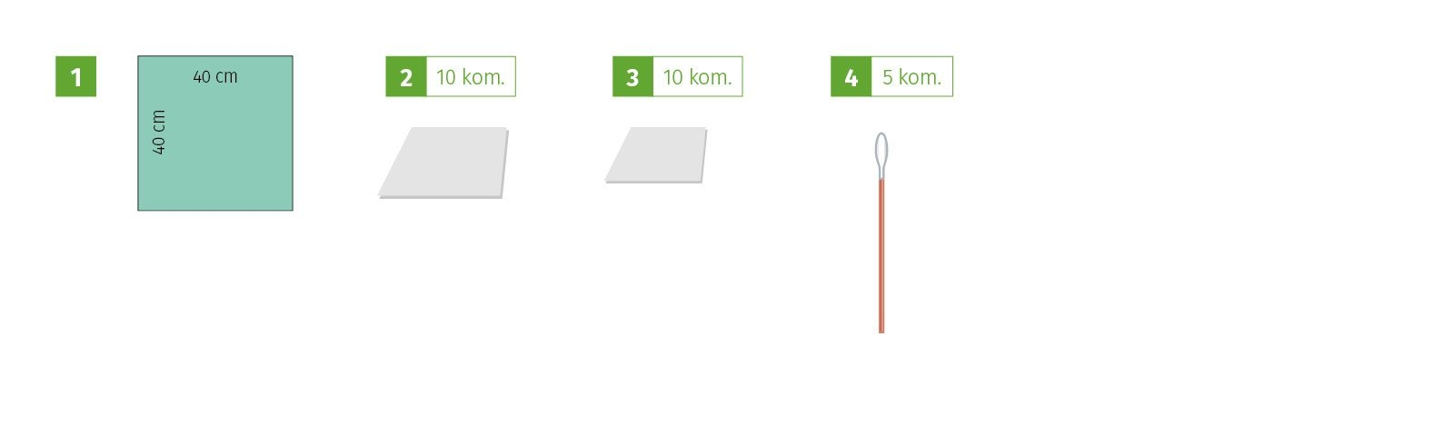| 1 | kompresa, zarezana do pola | 5 × 5 cm | 2 |